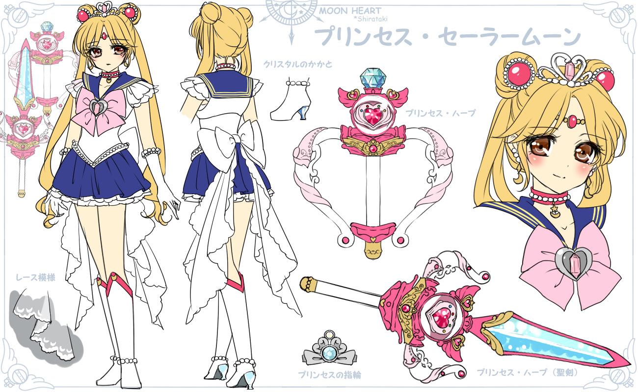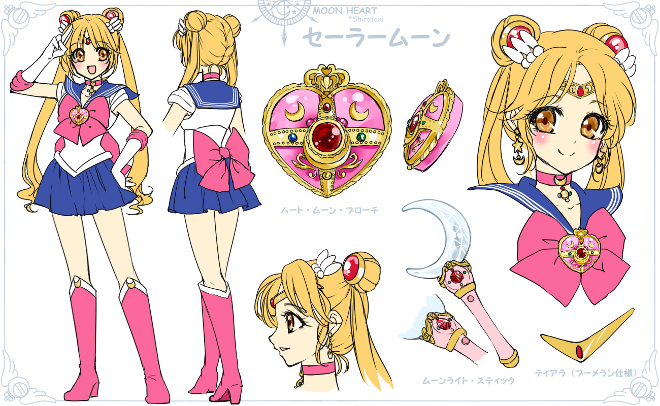必 殺 技 | ★ムーン・スパイラル・ハート・アタック(原作Act.28~・アニメ第91話~) スパイラル・ハートムーン・ロッドの浄化技。 アニメでは巨大なハートのオブジェで対象を打ち抜く。 ★ムーン・ティアラ・アクション(アニメ第114話~) | |