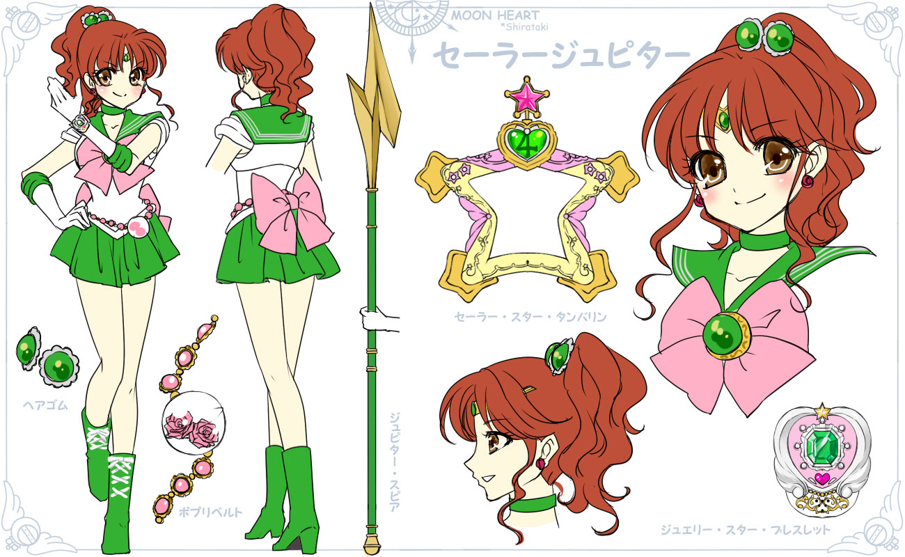 ア イ テ ム | +変身ペン(原作Act5~・アニメ第25話~) 原作、アニメ共にルナが何処からともなく持ってきた。 +避雷針(原作Act5~・アニメ第25話~) 他戦士と同じティアラだが、技発動時に中心から避雷針が伸び雷をあるめる。 +ジュエリー・スター・ブレスレット(ドラマAct~) 変身時に使用したブレスレット。 +セーラー・スター・タンバリン(ドラマAct26~) +ジュピター・スピア(ドラマAct49) 木星の力を借りてタンバリンが変形した槍。 | |